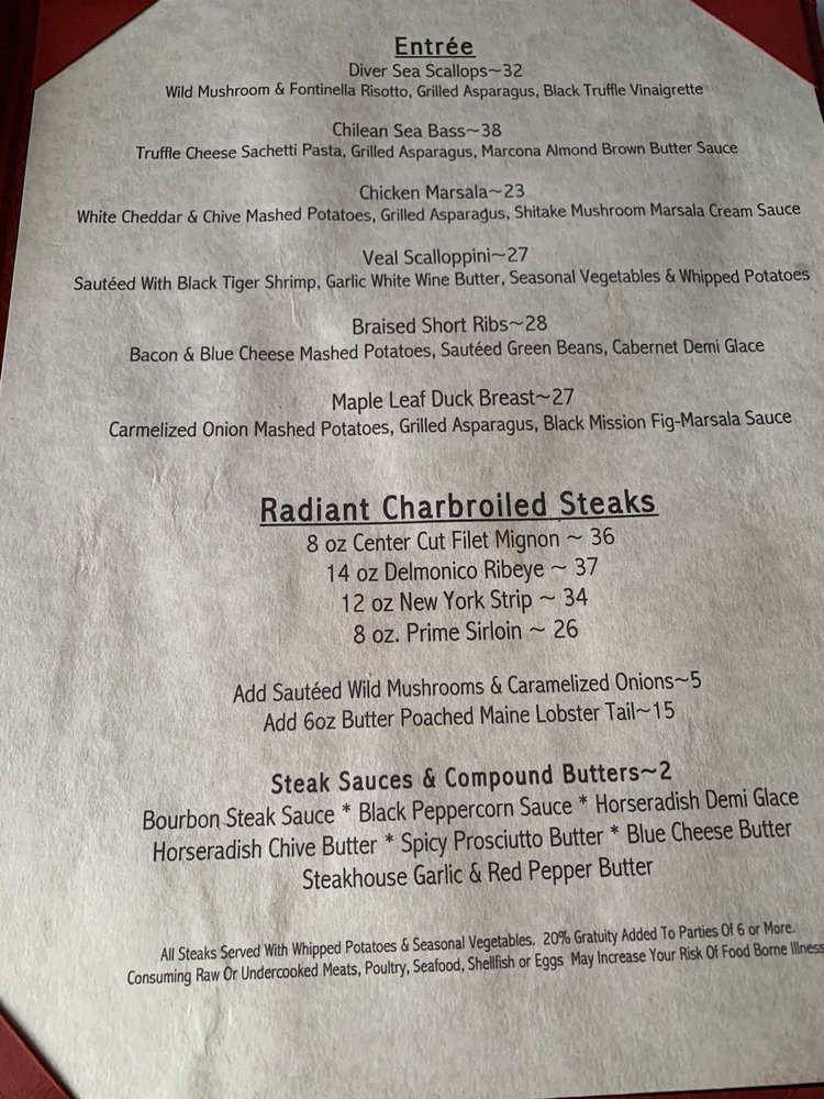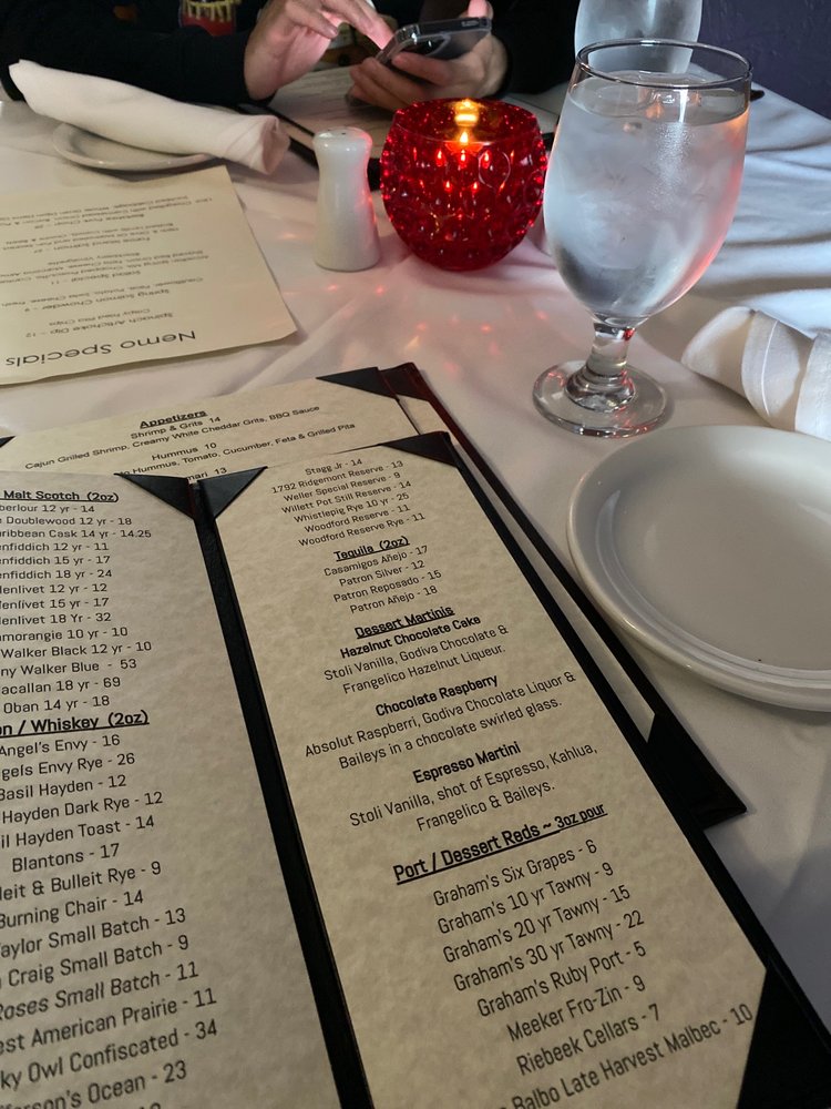 Nemo Grille, located in Avon, OH, offers a diverse menu of New American, Steakhouse, and Seafood dishes. With a range of options including Keto, Vegan, and Vegetarian choices, Nemo Grille caters to a variety of dietary preferences. The restaurant provides a cozy and intimate atmosphere, perfect for a romantic dinner or a gathering with friends. Customers rave about the excellent food and service, with standout dishes like the lasagna, short rib, scallops, and sea bass receiving high praise. The attentive staff, extensive menu, and warm ambiance make Nemo Grille a top choice for dining in the area. Whether you're looking for a quiet dinner for two or a fun night out with friends, Nemo Grille has something for everyone.