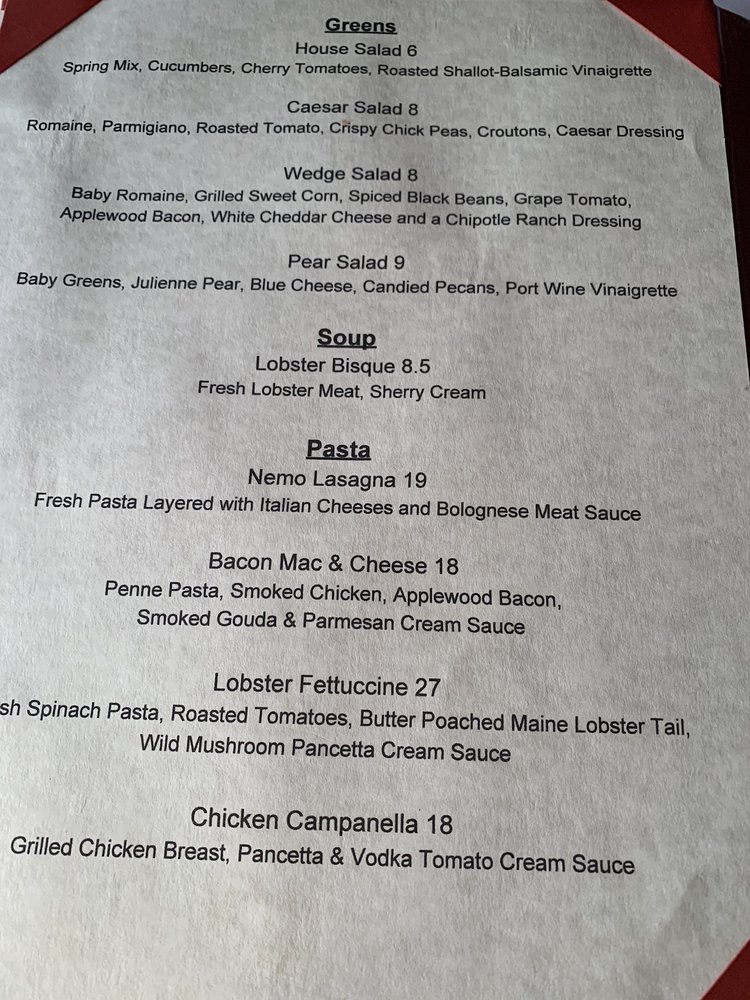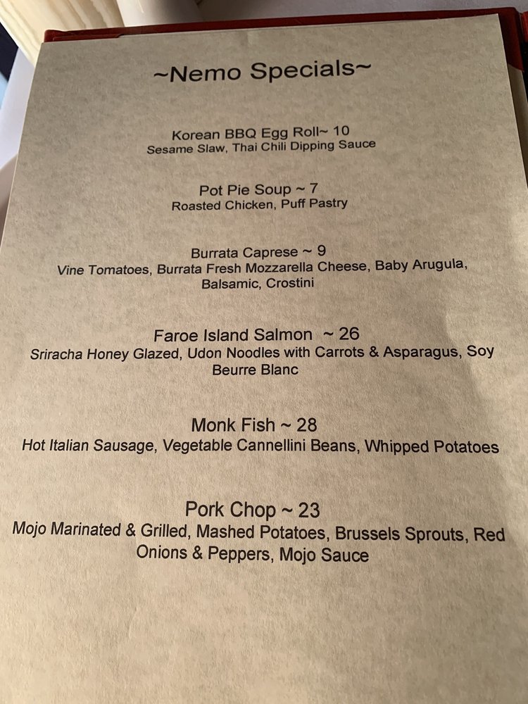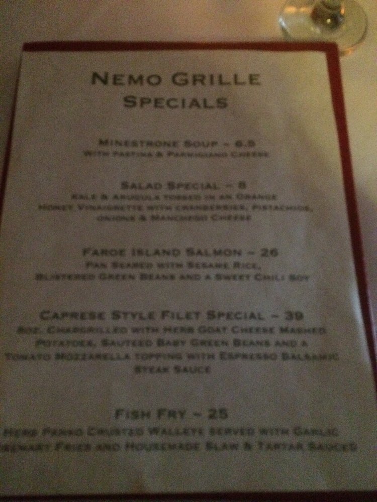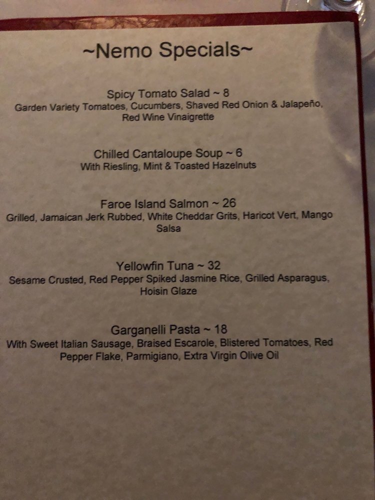 Nemo Grille Menu